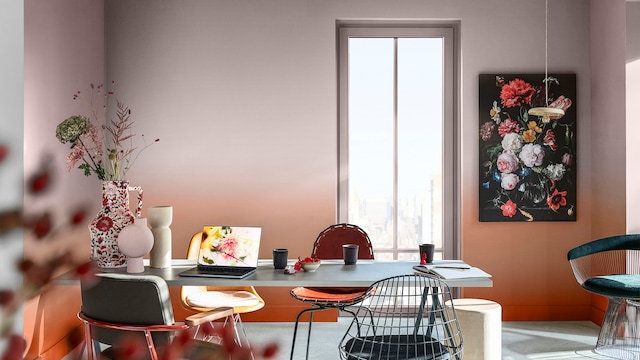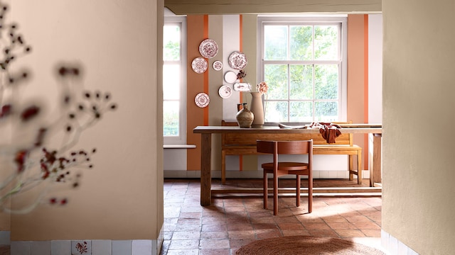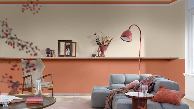 We willen dat elk deel van ons huis vertrouwd en comfortabel aanvoelt. De wereldse aardetinten in ons warme kleurverhaal creëren de ideale achtergrond. Hier zijn roodoranje en Sweet Embrace™ voor een ombre-effect gebruikt dat je omarmt met zachtheid. Wil je dit? Bekijk onze handige stap-voor-stap video.