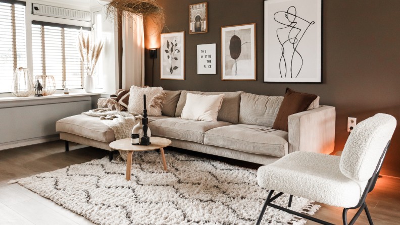 Ons interieur kun je het beste omschrijven als Scandiboho met een kleurenpalet van verschillende naturel- en aardetinten. Door deze tinten te combineren met natuurlijke materialen zoals hout, rotan, linnen, jute en zeegras oogt ons interieur altijd warm en heb ik soms eventjes het idee alsof ik weer terug ben in Indonesië! En dat is niet heel gek want de inspiratie van deze kleuren en materialen is voortgekomen uit onze reis naar Bali.