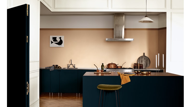 Beginnen we bij een warme, volle en aardse kleur, dan komen we al snel uit bij Brave Ground™. Deze zachte kleur geeft een ruimte een prachtige basis om verder te experimenteren en is ook prachtig te combineren met donkerdere tinten bruin, zoals het warme Spiced Honey.